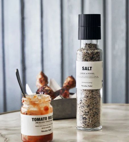 Maak van je soepen en stoofschotels een culinaire belevenis met dit knoflook- en venkelzout van Nicolas Vahé. Een vleugje zwarte peper, anijs, gember en citroengras geeft deze zoutmelange een exotische en interessante touch. De fles zout wordt geleverd met een keramische molen, hierdoor komen de oliën vrij voor meer geur en smaak in je gerechten.