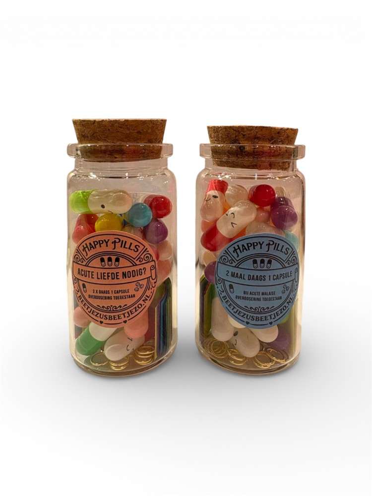 Wat zijn ze geweldig en origineel deze happy pills. Dit potje is gevuld met 25 gekleurde capsules. In het potje zitten ook 25 kleine briefjes om de allerliefste boodschap op te schrijven en daarmee laat jij je vriend of vriendin zich gelijk een stuk beter voelen.